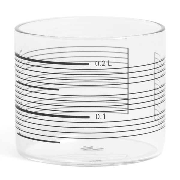[ZESTAW] Inspirowana szkłem laboratoryjnym subtelna szklanka, w której można serwować zarówno zimne jak i gorące napoje oraz desery. Wykonana jest ze szkła borokrzemowego co sprawia że jest bardziej odporna na różnice temperaturowe aniżeli szklanka ze szkła tradycyjnego. Dzięki podziałce z precyzją wymierzysz odpowiednią ilość napoju. Szklanka ma pojemność 200 ml i jest dostępna w 4-częściowym zestawie z czterema różnymi wzorami. Razem z karafką 1L Carafe tworzą idealny zestaw do serwowania. „Prostota pomija niepotrzebne. Dobre produkty pokazują swoją istotę bez rozpraszania uwagi. Ponadczasowe przedmioty to rzeczy, do których ludzie czują się przywiązani i które zostały zaprojektowane i wykonane z wielką uwagą.” David Derksen Wykonanie z najwyższej jakości szkła borokrzemowego, produkowanego w zaledwie kilku miejscach w Europie. Wyrafinowany projekt graficzny na powierzchni szkła jest w istocie funkcjonalną podziałką do odmierzania mililitrów. Minimalistyczna, ponadczasowa forma inspirowana szkłem laboratoryjnym idealnie sprawdzi się w każdego rodzaju wnętrzach. Szklanka ma pojemność 200 ml i posiada 4 różne wzory. Idealne do serwowania napojów i deserów. Można myć w zmywarce.