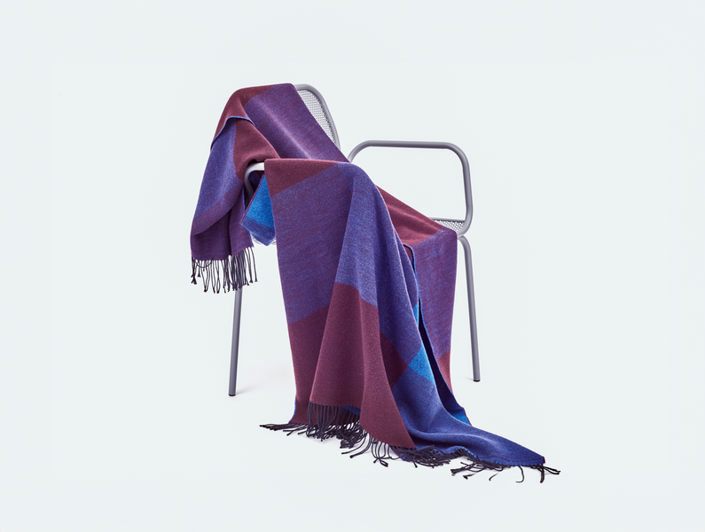 Inspiracja dla koca Blend została zaczerpnięta z malarstwa plenerowego, gdzie barwy odgrywają podstawową rolę. Technika mieszania wątków w dwóch kolorach na różne sposoby tworzy pięć różnych tonów na jednym pledzie.