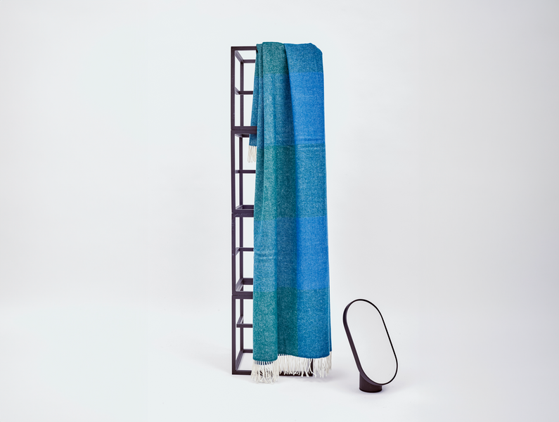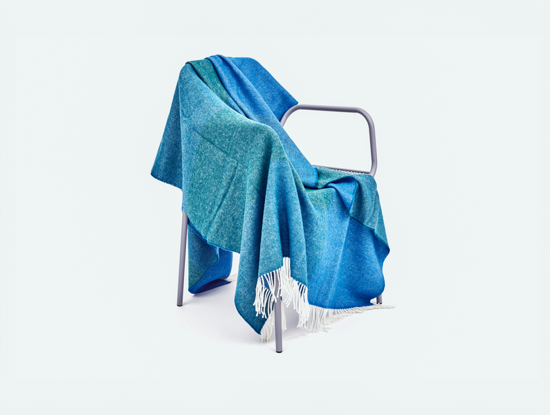 Inspiracja dla koca Blend została zaczerpnięta z malarstwa plenerowego, gdzie barwy odgrywają podstawową rolę. Technika mieszania wątków w dwóch kolorach na różne sposoby tworzy pięć różnych tonów na jednym pledzie.