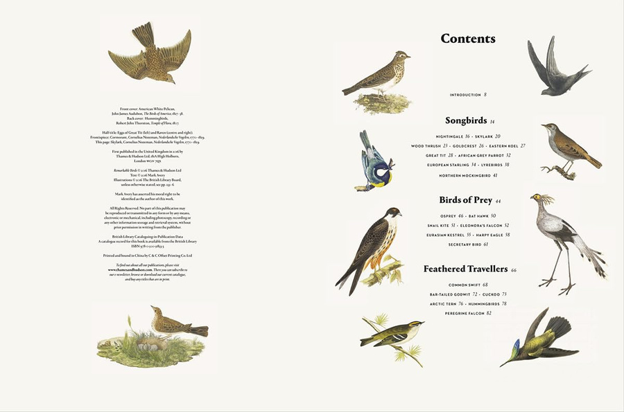 ‘Songbirds’ celebrates the greatest bird virtuosi, such as the Nightingale, while ‘Birds of Prey’ include majestic hunters such as the Harpy Eagle, which catches prey as large as monkeys and sloths. ‘Feathered Travellers’ describes astounding journeys made by birds – even some tiny Hummingbirds migrate huge distances. ‘The Love Life of Birds’ can rival any soap opera and involves the most brilliant displays, notably the Birds of Paradise, with their extravagant feathers and dances. ‘Avian Cities’ explores species such as the Flamingo that live in spectacular large colonies. ‘Useful to Us’ examines the ways we find birds of value, such as the Turkey, but also the Canary. ‘Threatened and Extinct’ describes some no longer living and others that seem on the brink.