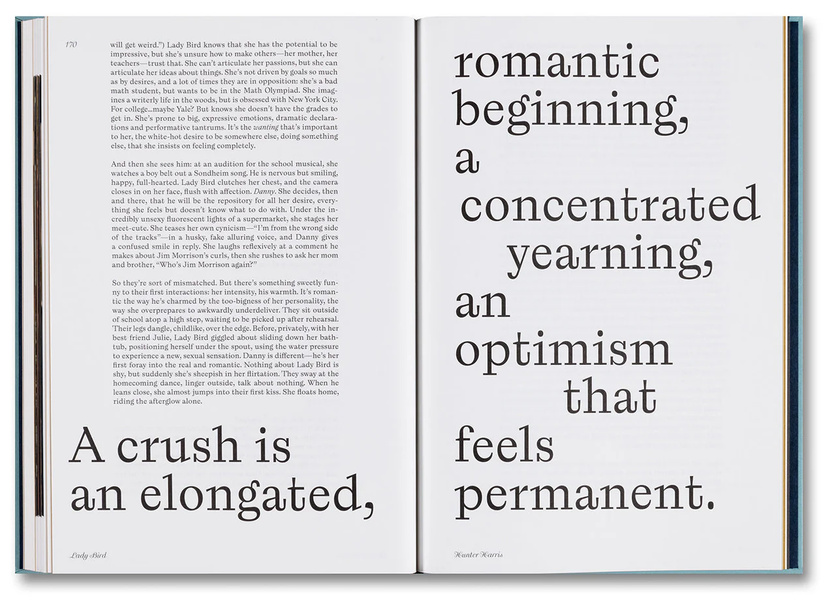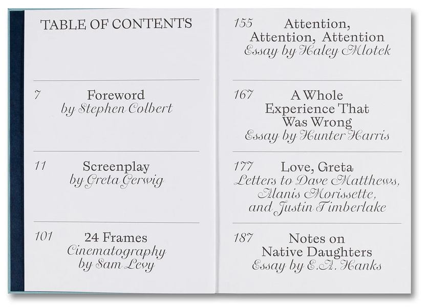 - Greta Gerwig’s Lady Bird Screenplay Book includes a foreword by Stephen Colbert, essays by Haley Mlotek, Hunter Harris, and E. A. Hanks, and Gerwig’s letters to Dave Matthews, Alanis Morissette, and Justin Timberlake.