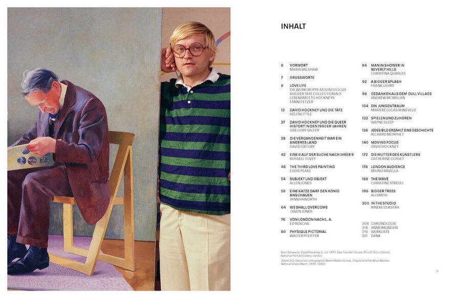 Die Essays beleuchten Hockneys Sozialisation in der jungen Queer Culture Englands der 1960er-Jahre; persönliche Beiträge und Erinnerungen von Frank Gehry, Marieke Lucas Rijneveld, Ed Ruscha, Christine Streuli oder Ali Smith markieren Hockneys große Bedeutung für die zeitgenössische Alltagskultur.