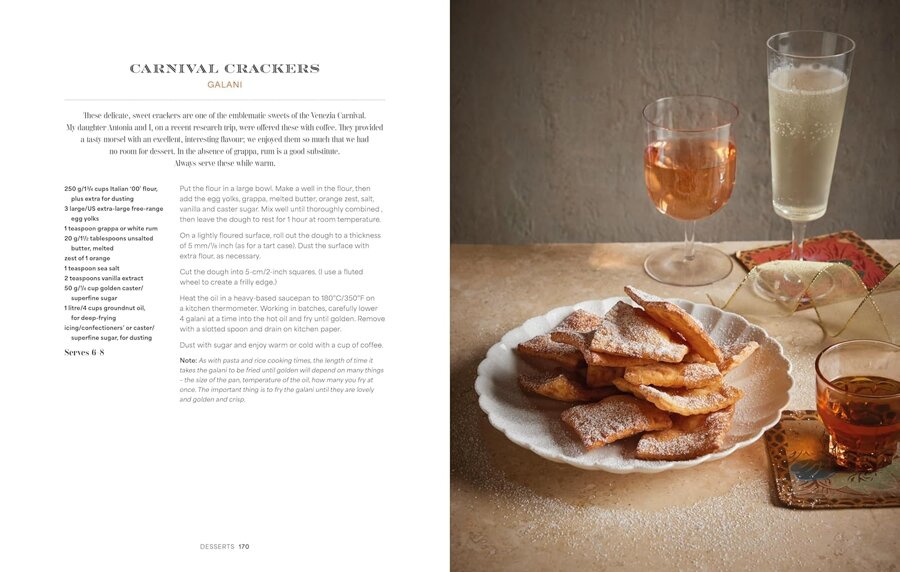 Fascinating essays are also included to provide background to the history of the region, plus a deep dive into the famous produce, including a study of the wines produced there. The Veneto is a northern Italian region, lying between the base of the Alps and the Adriatic to the south. It has rich soil, a good climate, and as a result, produces rice, wonderful vegetables, wild and domestic animals, and much dairy produce. The Veneto also forms part of the ‘polenta, bean and rice belt’ of Italy, and risotti, pulses and a beautiful white polenta are more prevalent than pasta.