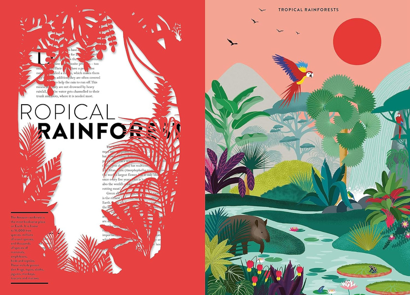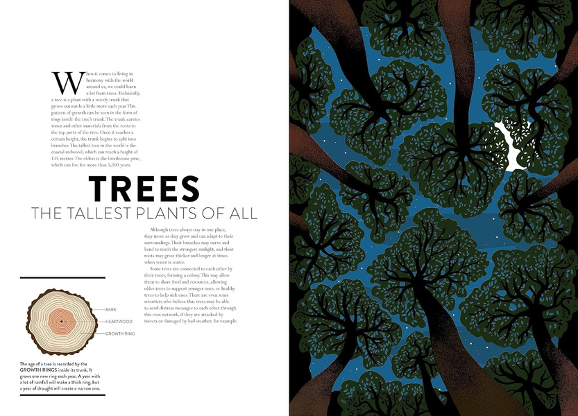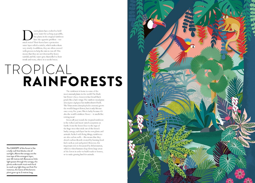 Hélène Druvert’s meticulous lasercuts and beautiful illustrations take you on a trip around the world to visit some of the most fascinating examples of plant life, from the tiniest algae to the tallest trees. Learn how plants are pollinated and how they spread their seeds, how trees communicate with each other, how carnivorous plants attract their prey, and how plants play a vital part in making our planet a great home for humans.