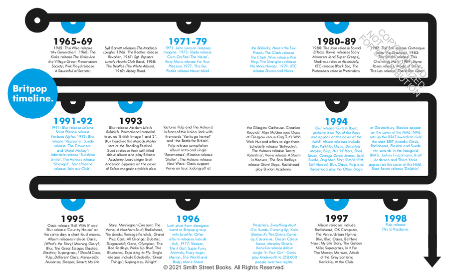 Uncover the artists and albums, the who’s who and hangabouts that defined the era. From Blur’s jaunty pop, Pulp’s working-class poetry and Suede’s dark tales of the elegantly wasted, to the pub sing-alongs of Oasis – Britpop looked to the past to reshape the future, becoming the last true music scene of the 20th century.