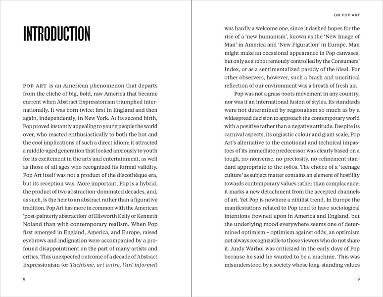 Across three chapters, the author first outlines the phenomenon of Pop Art, its antecedents and related styles ranging from folk art, Surrealism and Dada as well as the work of key artists such as Robert Rauschenberg and Jasper Johns. She then focuses on Pop Art in New York, discussing key iconic figures including Claes Oldenburg, Jim Dine, Roy Lichtenstein, James Rosenquist, Andy Warhol and Tom Wesselmann, who appropriated advertising, comics, and the conventions of commercial art and its specific techniques. Finally, Lippard provides an extensive overview of Pop Art's impact and evolution across Europe, particularly in France, Germany and Italy; and Canada, and so touches upon the work of Christo, Mimmo Rotella and many others, including Niki de Saint Phalle and Joyce Weiland, whose work are now experiencing a resurgence of interest.