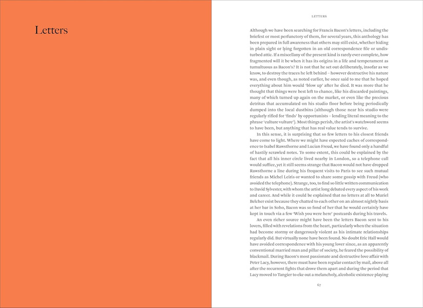They often come with a sketch as an aide-mémoire or an injunction to himself as he worked in the studio, and many have only come to light since his death. Bacon’s letters mirror and reveal his dominant preoccupations at different points throughout his long career. Most of Bacon’s letters have never been published and include several that he wrote to the author.