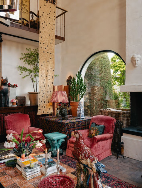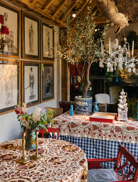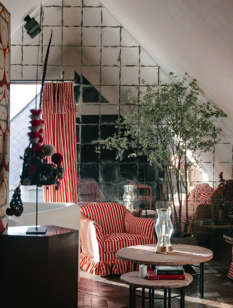 In his unpretentious interiors, he sprinkles generously with colours, patterns and exoticism. ‘Nowhere in my interiors is the distance to a bookcase, fireplace or bar cabinet more than five steps,’ he says. With the bravura of his teachers Cecil Beaton and David Hicks, he designs dazzling sets for everyday theatre.