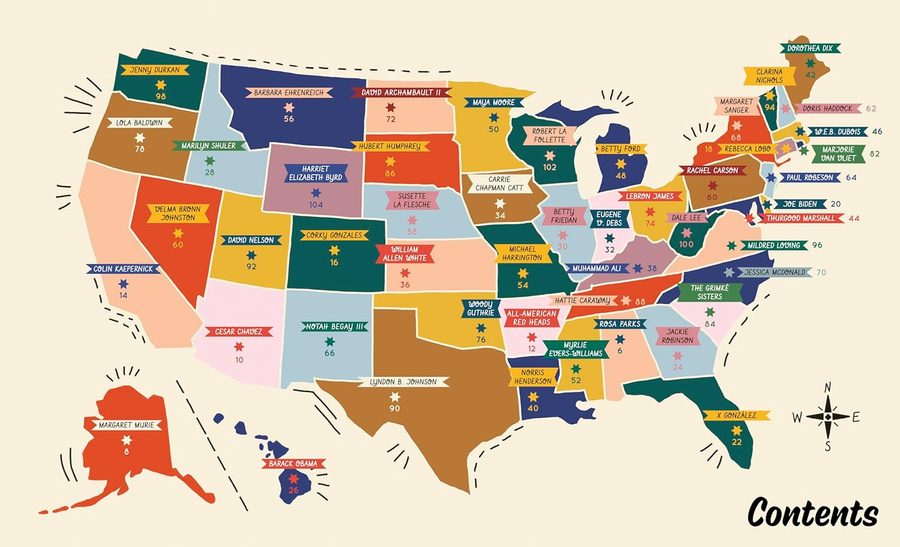 DuBois; Michigan: Betty Ford; Minnesota: Maya Moore; Mississippi: Myrlie Evers-Williams; Missouri: Michael Harrington; Montana: Barbara Ehrenreich; Nebraska: Susette La Flesche; Nevada: Velma Bronn Johnson; New Hampshire: Doris Haddock; New Jersey: Paul Robeson; New Mexico: Notah Begay; New York: Margaret Sanger; North Carolina: Jessica McDonald; North Dakota: Dave Archambault; Ohio: LeBron James; Oklahoma: Woody Guthrie; Oregon: Lola Baldwin; Pennsylvania: Rachel Carson; Rhode Island: Marjorie van Vliet; South Carolina: Sarah and Angelina Grimke; South Dakota: Hubert Humphrey; Tennessee: Hattie Caraway; Texas: Lyndon Johnson; Utah: David Nelson; Vermont: Clarina I.H. Nichols; Virginia: Mildred Loving; Washington: Jenny Durkan; West Virginia: Debbie Null; Wisconsin: Robert LaFollette; Wyoming: Harriet Elizabeth ByrdThe perfect book for kids to discover the most amazing achievements in American history. Learn about key social issues including feminism and civil rights.