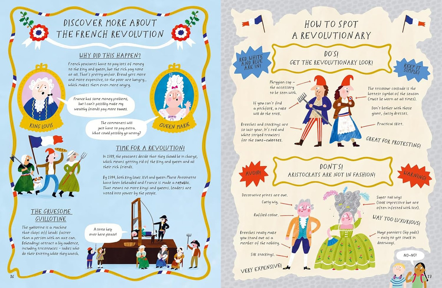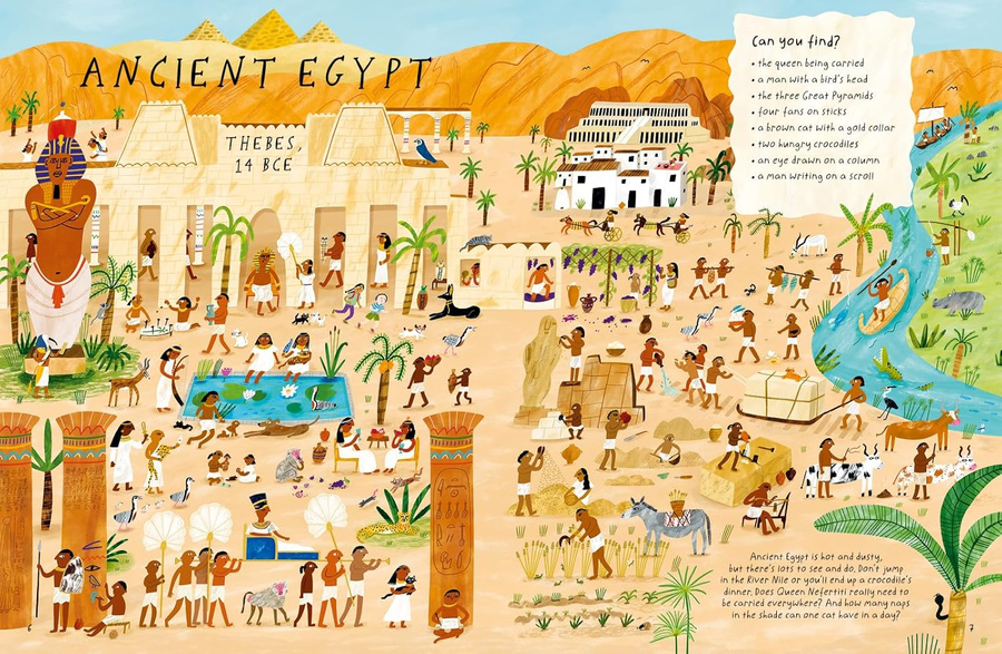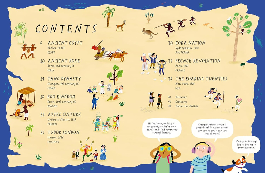 Readers will seek across nine amazing locations, from the palaces of ancient Egypt to the Roman Colosseum, the dirty streets of Tudor London to the chaos of the French Revolution, to discover key people and objects from the time and place, supported by well-researched and playfully told facts giving insight into what the reader has found. This is a tasty sample of world history that will delight young history lovers.
