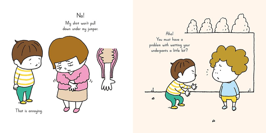 At the centre of this story is a little boy who has a small but embarrassing problem: every time he pees, a few drops dribble on to his underpants. Curious, he asks other children if they have the same issue. He soon discovers a simple life lesson: everyone is battling some kind of irritation.