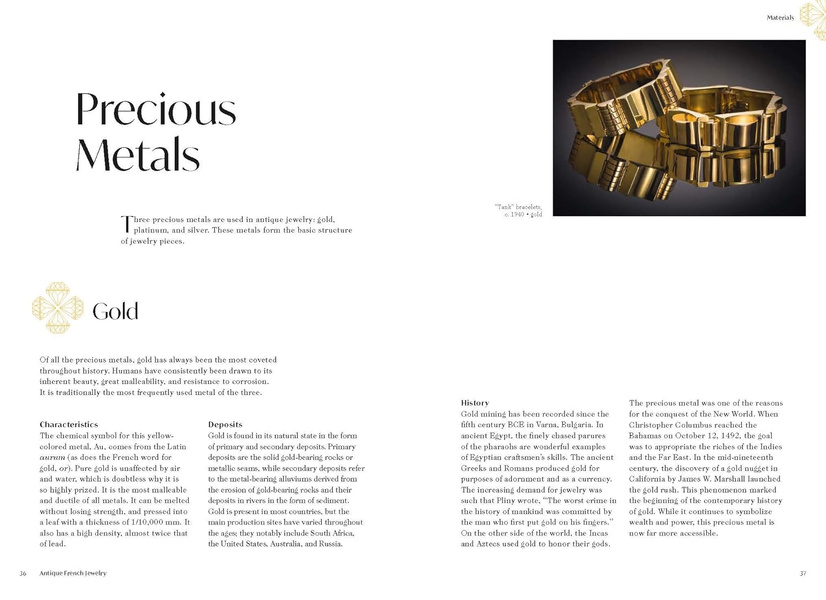 Entries are organized by period, and include primary sources of inspiration and characteristics, designers, materials, gemstones, and types of jewelry. Completed with an overview of the key design houses and artists who have left their mark on the jewelry industry since 1800, along with detailed advice for buying and maintaining pieces, this practical reference—richly illustrated with photographs and archival documents—provides everything you need to know to appreciate antique jewelry in all its facets.