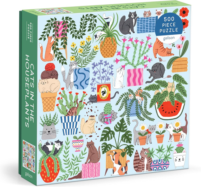 - 500 PIECE PUZZLE – Enjoy a delightful journey into the world of feline companionship and lush greenery with Galison's charming 500-piece puzzle featuring artwork of all kinds of cats and houseplants