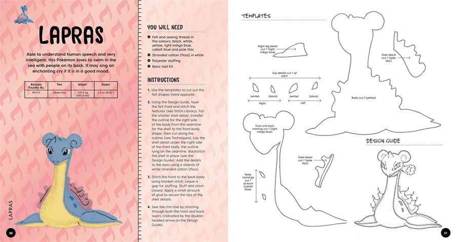 Share your love of Pokémon with these easy sewing patterns for adorable felties, all made using simple hand-sewing techniques. Featuring well-known cute Pokémon - including Pikachu, Eevee, Snorlax, Piplup and many more – each Pokémon pattern comes with step-by-step instructions and full-size templates, making them perfect for all abilities. The only materials you'll need are felt, a needle and some threads and a little stuffing.