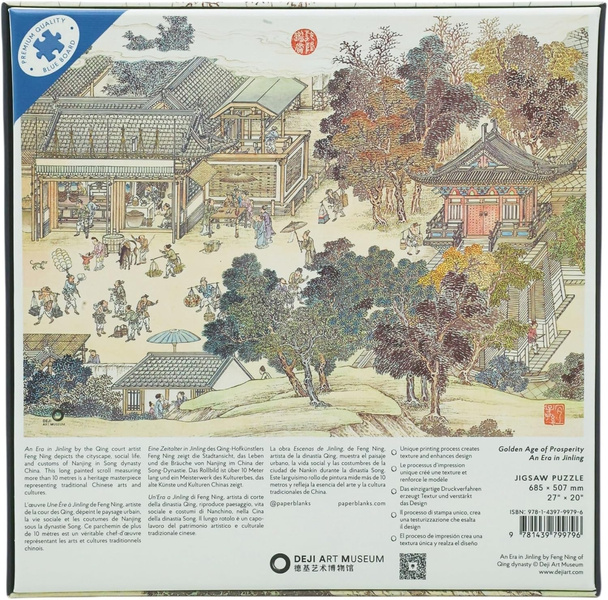 An Era in Jinling by the Qing court artist Feng Ning was inscribed by three Qing emperors, Qianlong, Jiaqing and Xuantong. Depicting the cityscape, social life, and customs of Nanjing in Song dynasty China, this long painted scroll measuring more than 10 meters is a heritage masterpiece representing traditional Chinese arts and cultures.