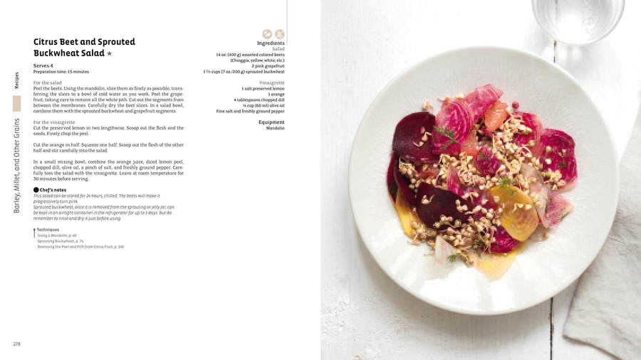 Vegetarian diets range from flexitarian to lacto-ovo vegetarian to vegan, and this exhaustive encyclopedia contains dishes to delight the whole family. Step-by-step kitchen techniques demonstrate how to prepare and cook the essential ingredients—from fruits and vegetables to rice, wheat, or soybeans, and from mushrooms and seaweed to eggs and dairy products. Recipes include vegan and gluten-free options and reveal the infinite possibilities of vegetarian cooking to create healthy, tasty, and hearty meals. From Shiitaki, bok choy, and cashew fried rice to Palaak paneer; from Fennel tortilla to Pumpkin, red onion, and walnut kibbé; and from Passion fruit and pomegranate pavlova to Hazelnut maple syrup tarts, recipes are organized by main ingredient, graded for difficulty, and include ten “challenge” recipes contributed by international Michelin star chefs. A practical guide provides useful information on the different types of vegetarianism, how to achieve a balanced diet, product substitutions and seasonality charts, with illustrated guides to staple ingredients. The volume is completed with a bibliography and indexes to main ingredients, vegan recipes, and gluten-free recipes.