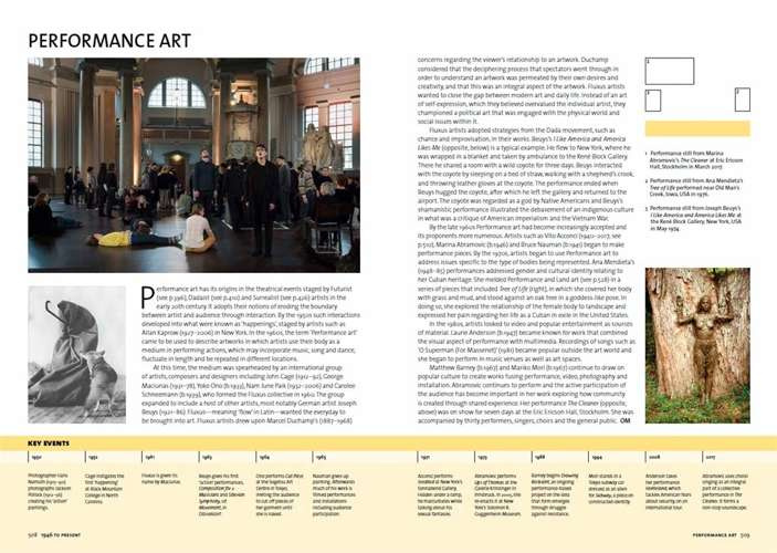 - The book traces the development of art period by period, with the illustrated text covering every genre, from painting and sculpture to conceptual art and performance art. Cultural timelines are there too, to help to the reader with historical context.