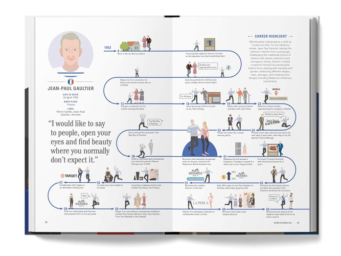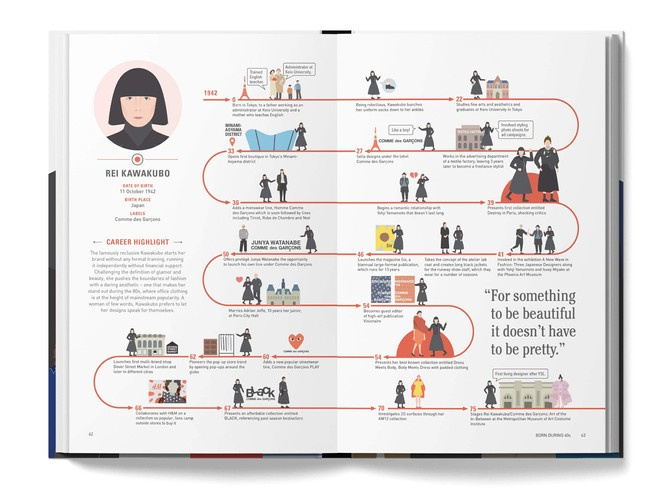 Filled with timelines and fascinating graphics that place each fashion designer on the world stage. This volume shares appraisals of 50 of the most important fashion designers and their iconic status. Alongside star designers such as Coco Chanel, Karl Lagerfeld, Cristobal Balenciaga, and the most influential fashion designers in the fashion industry, it is filled with historical information about the brands and biographies.