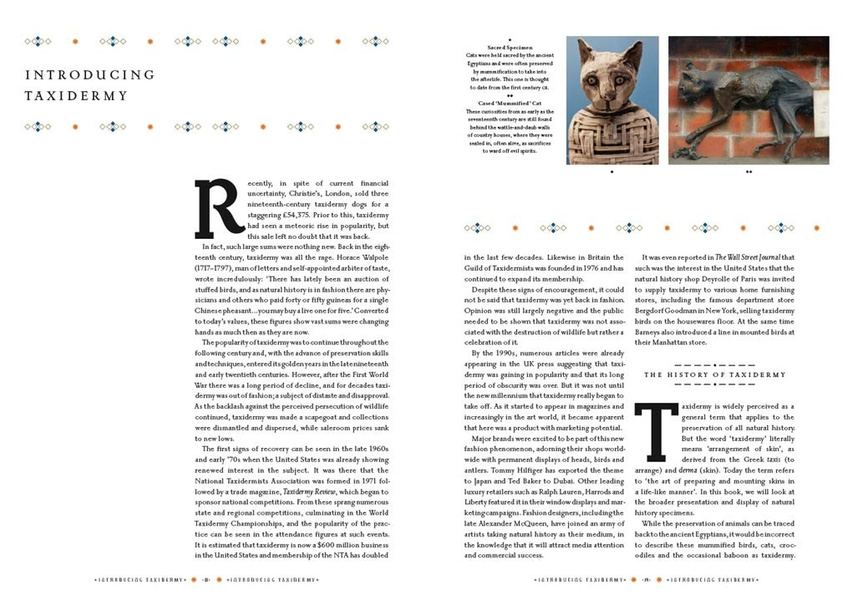 - Taxidermy has come in from the cold. Stuffed animals are appearing everywhere from chic apartments to luxury boutiques. Museums have been dusting down their collections to put them back on display, while contemporary artists have rejuvenated the practice.