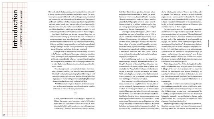 - This celebration of 20 of China's latest generation features detailed profiles of each architect