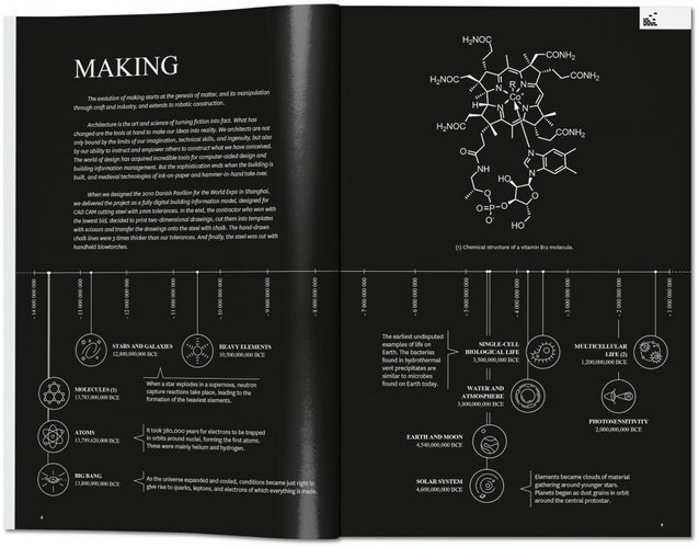 William Gibson's words embody architecture's role perfectly: "The future is already here-it's just not evenly distributed."With Formgiving, BIG presents the third part of its TASCHEN trilogy, which began with Yes is More, one of the most successful architectural books of its generation, and continued with Hot to Cold. An Odyssey of Architectural Adaptation. The book is presented in a timeline, stretching from the Big Bang into the most distant future.