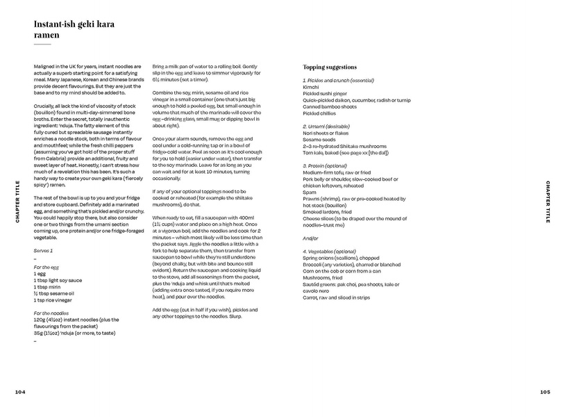 Ed Smith helps his readers home in on their cravings (whatever the reason for them) by organising his recipes within six cleverly conceived flavour profiles: fresh and fragrant chilli and heat tart and sour curried and spiced rich and savoury; and (best of all?) cheesy and creamy. There's also a directory of alternative cravings at the back, providing additional ways in. All bases are covered, from snacks through sides, to main courses and puddings.