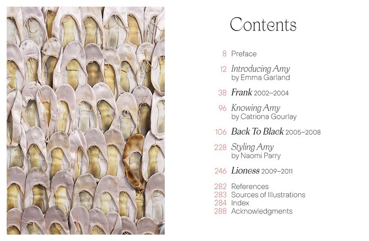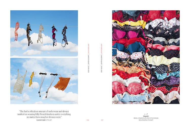 Organized broadly chronologically, the book features newly shot lyric sheets, sketches and ephemera together with contextual photographs and video stills, including album, single and promotional artworks and outtakes. Punctuating the story are photographs of dressed room sets each created, designed and styled especially for the book by Naomi Parry to evoke a period or aspect of Amy's life or personality, incorporating Amy's clothing, possessions, lyrics and other memorabilia.