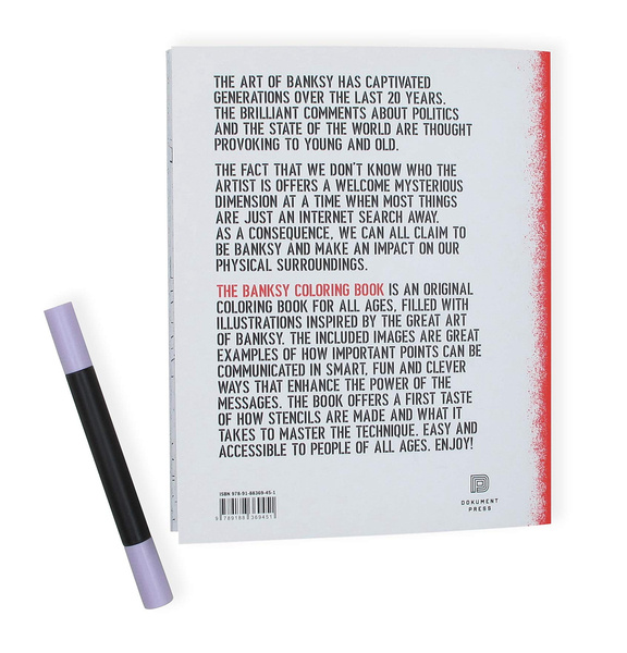 The Banksy Coloring Book is filled with illustrations inspired by the great art of Banksy. It gives a first taste of how stencil's are made and what it takes to master them. Easy and open to anyone. Enjoy!