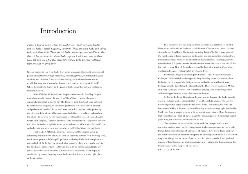 A stylishly illustrated compendium of 100 herbs, designed to enrich our understanding of all their uses. This isn't just a book for the kitchen - it's for the greenhouse, the medicine cabinet, the coffee table... Award-winning designer Caz Hildebrand's Herbarium is a 21st-century reboot of the traditional herbal compendium.