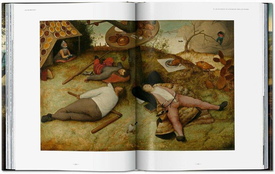 This monograph is a testament to Bruegel’s evolution as an artist, one who bravely confronted the issues of his day all the while proposing new inventions and solutions. Rather than idealizing reality, he addressed the horrors of religious warfare and took a critical stand against the institution of the Church. To this end, he developed his own pictorial language of dissidence, lacing innocuous everyday scenes with subliminal statements in order to escape repercussions.