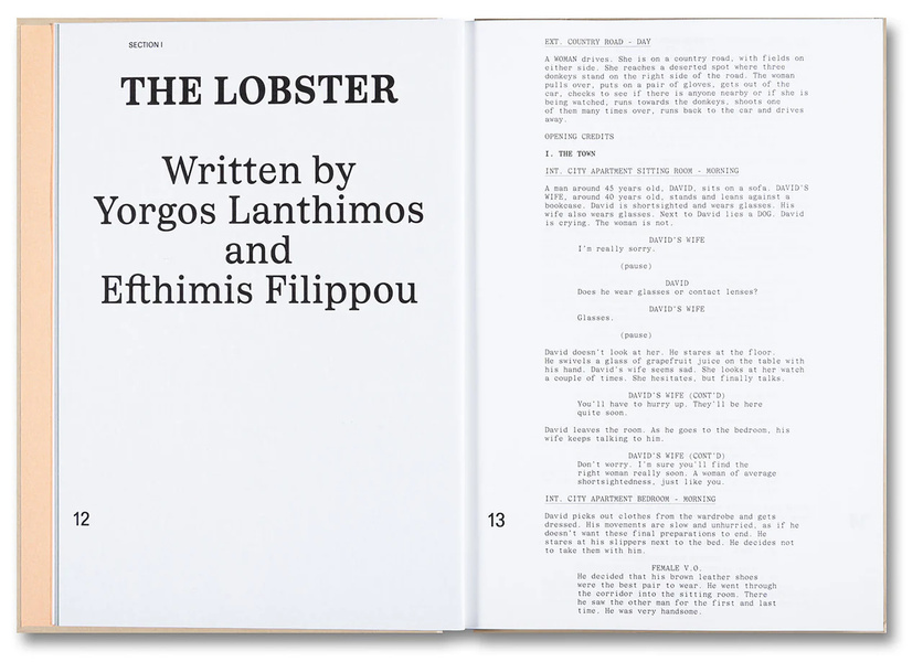 The script for The Lobster is accompanied by a poem by Emma Stone, an essay by Ottessa Moshfegh, and behind-the-scenes set photography by Yorgos Lanthimos.