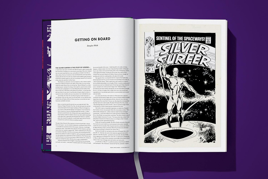 In the spring of 1968, things came together for both writer and character, with Lee giving the Surfer Marvel’s very first ongoing double-sized book. Lee also recruited artist John Buscema, who had recently been lending his extraordinary pencils to The Avengers. Together, they spun off a run of legendary tales that helped define the character forevermore. The feature stories from the entire 18-issue run of the 1968 Silver Surfer series are collected in this cosmic-sized XXL tome from the Eisner Award-winning Marvel Comics Library series. The most pristine pedigreed comics have been cracked open and photographed for reproduction in close collaboration with Marvel and the Certified Guaranty Company. Each page has been photographed as printed more than half a century ago, then digitally remastered using modern retouching techniques to correct problems with the era’s inexpensive, imperfect printing—as if hot off a world-class 1960s printing press. A custom paper stock was exclusively developed for this series to simulate the feel of the original comics. Texts by author and critic Douglas Wolk and Marvel artist and brother of John Buscema, Sal Buscema, accompany original artwork, photographs, and rare memorabilia.