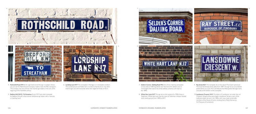 Along the way, the fascinating stories behind these unassuming treasures are uncovered, revealing where they came from before being affixed to brick or stone for decades to come. We’re introduced to the iconic nameplates of the City of Westminster, the stunning tiled signs of Hampstead and the revival nameplates of Lambeth, as well as the ghost signs of the no-longer existent NE postal district. London Street Signs is a striking visual record of our collective history that will appeal to design and history enthusiasts alike.