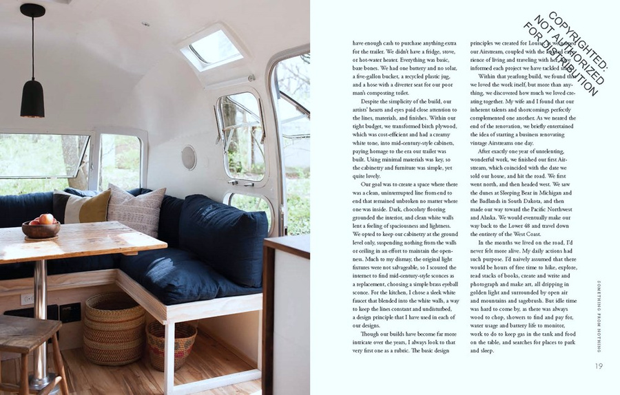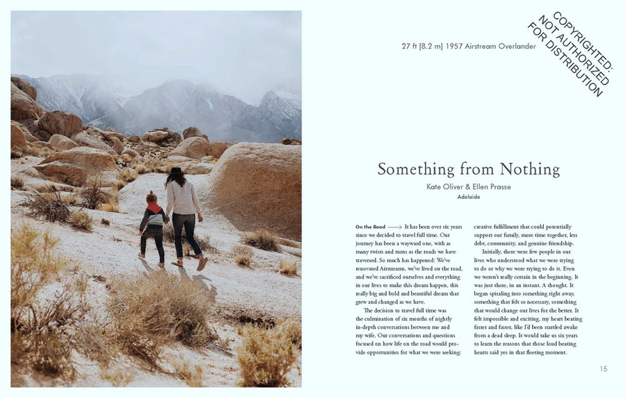 Brimming with evocative storytelling and hundreds of photographs showcasing handsome interiors and stunning landscapes, this book features 25 stories from solo travelers, couples, and families who traded the comforts of a rooted life for ever-changing vistas and eye-opening experiences. You'll meet a family exploring Australia in a cozy vintage camper filled with plants and natural wood finishes; a young couple designing a modern trailer inspired by the colors and textures of the high desert; a husband and wife living in a chic Airstream with green velvet seating, floral wallpaper, and herringbone wood floors.