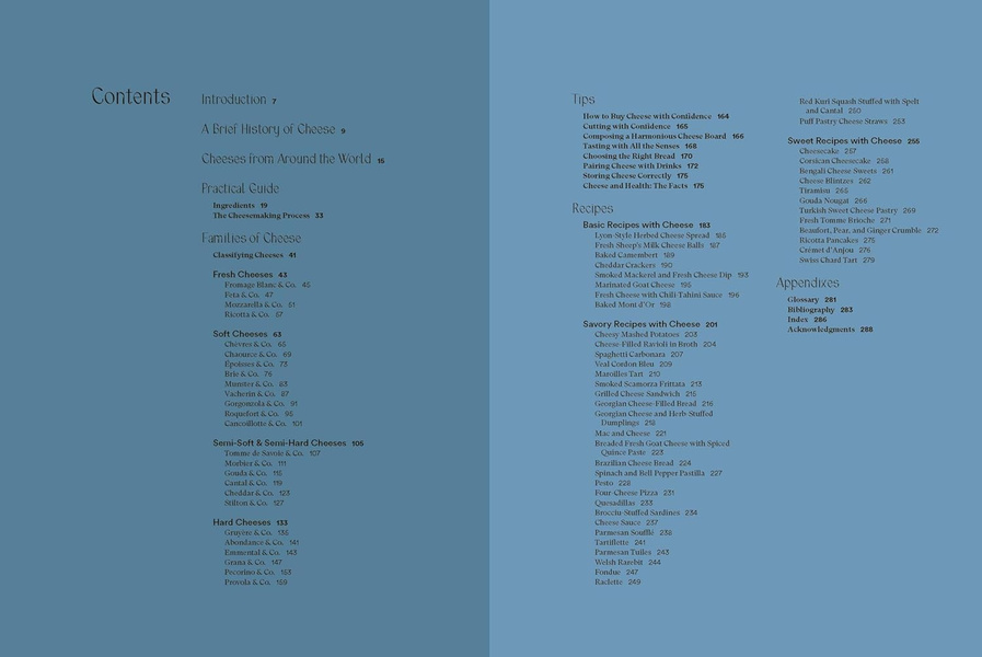 The four cheese types include fresh (cream cheese, burrata, Halloumi, gjetost), soft (goat, Brie, Époisses, Roquefort), firm (Morbier, Gouda, Cantal, cheddar), and hard (Gruyere, Emmentaler, pecorino, provola). Suggested pairings include feta roasted in fig leaves with peppercorns and preserved lemons; Munster with a Tripel pale ale, dessert wine, or gin; Stilton with black cherry jam, mango juice, or on pizza; and Grana in pesto or with sparkling or red wine according to the age. Once familiar with the varieties, put your favorite cheese to use in savory or sweet recipes, from Quesadillas to Parmesan Soufflé, Frittata à la Scamorza to Tartiflette, Linguine Carbonara to Khachapuri, or Cheesecake to Ricotta Pancakes. A glossary, selected bibliography, and indexes to the cheese varieties and the recipes complete the book. Anne-Laure Pham
