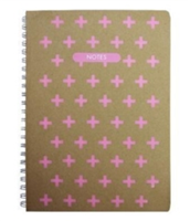 A generously sized notebook for taking notes, writing or sketching, with a die-cut cover and with half lined, half blank pages.