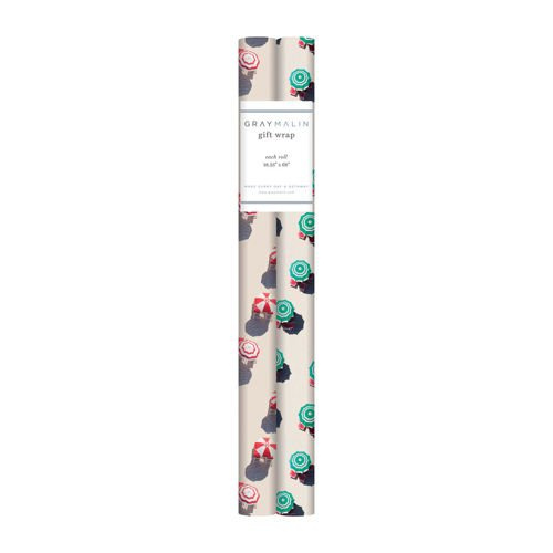Gray Malin’s awe-inspiring aerial photographs are shot from a doorless helicopter, creating stunning visual celebrations of color and repetition. This two roll set of gift wrap features colorful beach umbrellas in a green & white pattern and a red & whit
